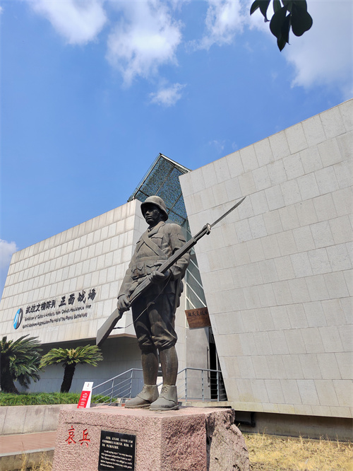 正面战场馆的建筑设计师是彭一刚先生,他的代表作有天津水上公园熊猫馆、山东甲午海战馆、伦敦中国城等建筑。该馆位于中流砥柱馆旁,取意国共合作抗击侵华日军之意,建筑面积近两千平方米,是一座素白色的方形建筑。本馆主要以抗日战争中的二十二场重大战役为主要展示内容。